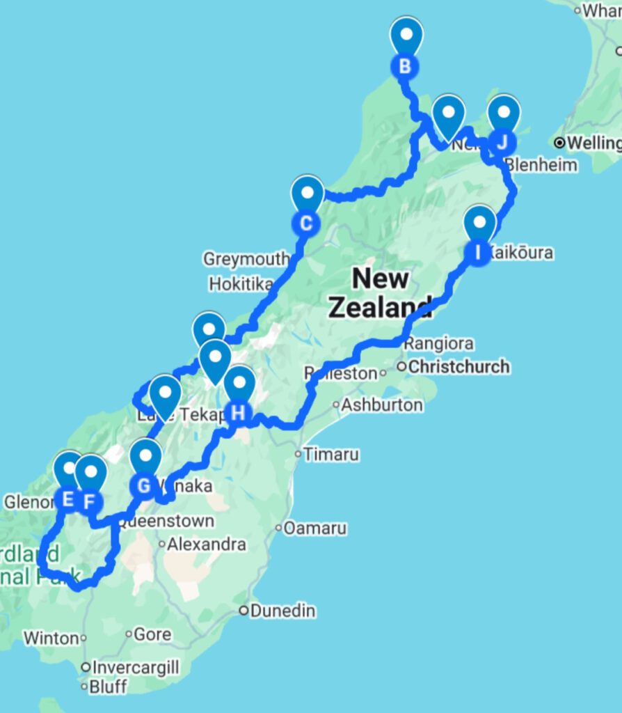 nach dem unerbittlichen Regen auf der Nordinsel, waren wir überglücklich, als wir von der Fähre stiegen und von Sonne und blauem Himmel begrüßt wurden. Die Wettergötter schienen uns wohlgesonnen zu sein, denn unser Glück hielt fast den gesamten Monat an, den wir im Süden verbrachten. Wir nutzten die Sonne ausgiebig und widmeten uns unserer neuesten Leidenschaft: dem Wandern. Für diejenigen unter euch, die Statistiken mögen (ich denke dabei an dich, Opa), hier eine kurze Zusammenfassung unserer Zeit auf der Südinsel. Von den 30 Tagen verbrachten wir 18 mit Wandern. Während dieser Wanderungen legten wir 343 km zurück und überwanden 15.405 Höhenmeter. Das erscheint viel (ist es auch), aber ich bleibe bei meiner Meinung, dass es keine bessere Möglichkeit gibt, die Schönheit der Südinsel zu genießen.