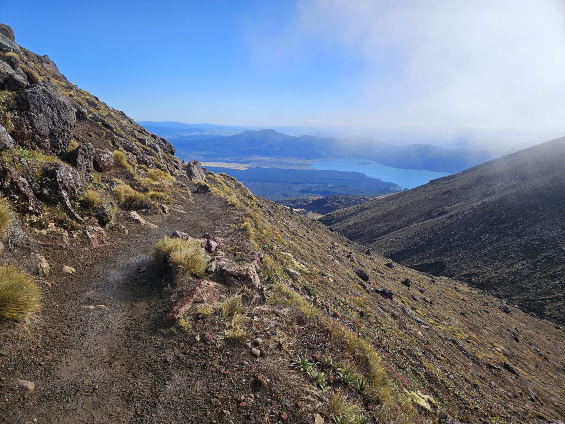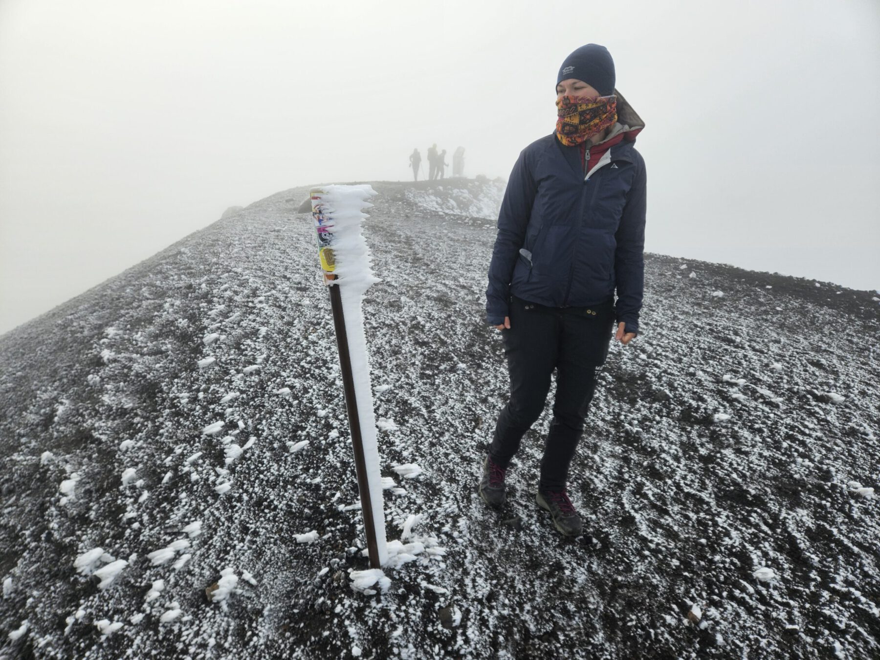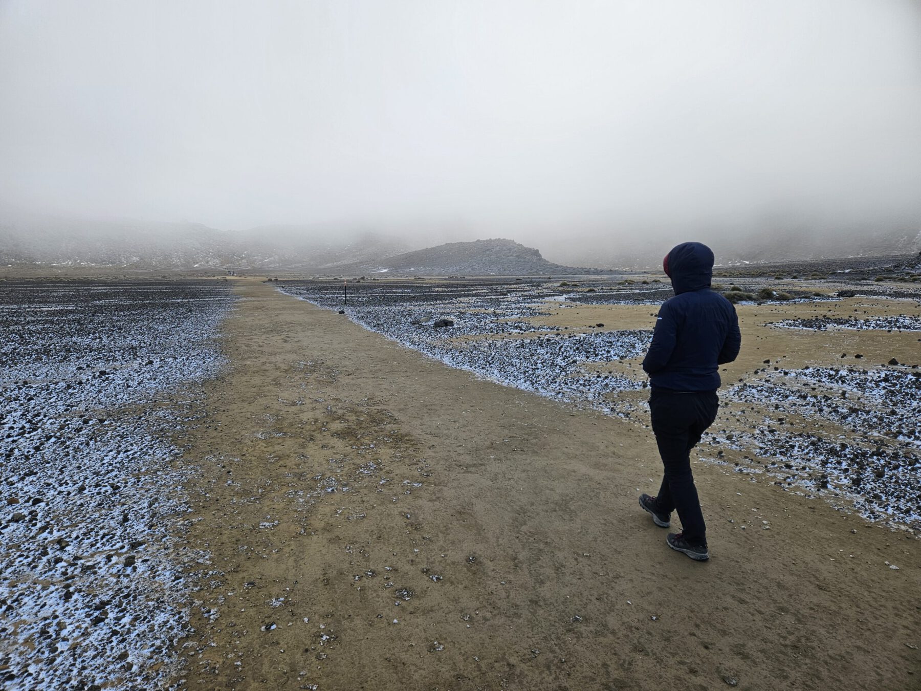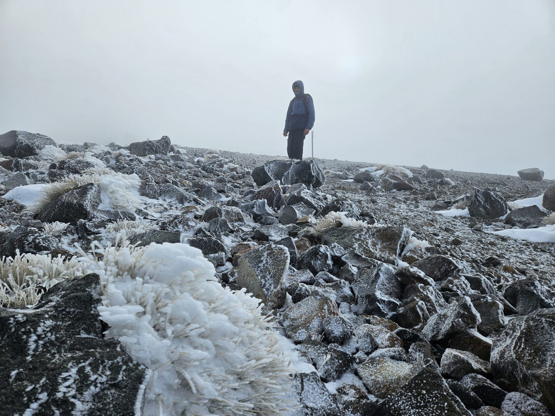 Ebenfalls einer der bedeutendsten Orte für die Maori ist der Berg Tongariro. Der aktive Vulkan ist bekannt für das spektakuläre Crossing vorbei am Mt. Ngauruhoe (aka Mt. Doom), rauchenden Kratern und Bergseen – welche wir im Nebel allerdings nur erahnen konnten. Aufgrund eines Sturms am Vortag erlebten wir die schwarzen Vulkanfelsen mit frischem Schnee bestäubt und bei beißender Kälte. Zum Glück haben wir für alle Witterung gepackt und konnten so erfolgreich Skiunterhose, Haube, Schal und Handschuhe zum Einsatz bringen.