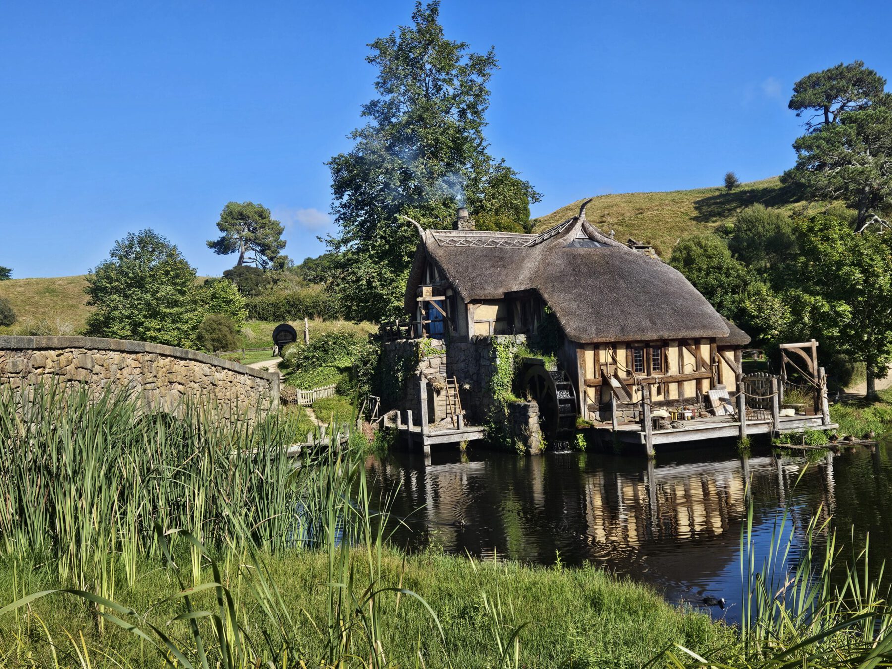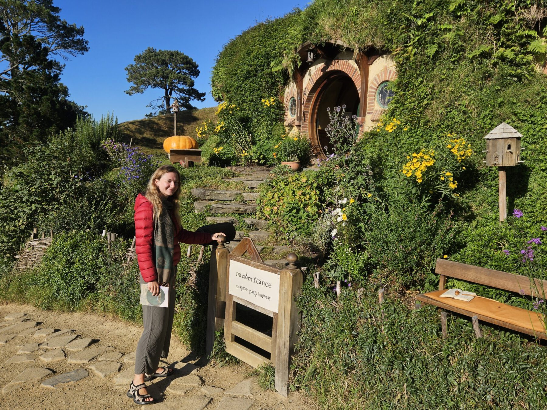 Am nächsten Tag wartete hinter den Toren Hobbitons die bekannteste Filmlocation von Herr der Ringe auf uns. Bei der Hobbit-Verfilmung wurde das kleine Dorf dauerhaft gebaut. Gärten mit (echten!) Apfelbäumen, Kürbissen und Sonnenblumen werden von 20 Gärtnern gepflegt. Rauch steigt von Manukaholz-Feuerchen aus den Kaminen auf und Enten schwimmen auf dem Fischteich. Es ist einfach unglaublich, mit welcher Liebe zum Detail und ohne Scheu vor Aufwand das Filmset gebaut wurde und erhalten wird. Für uns ging es dann im Anschluss so wie es richtigen Hobbits gebührt zum zweiten Frühstück.