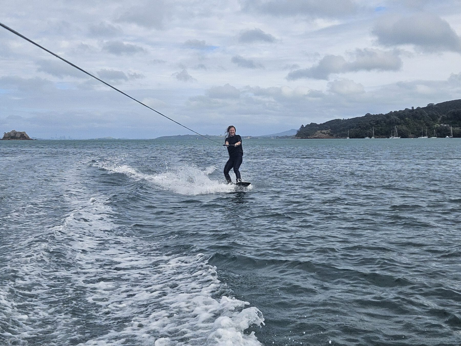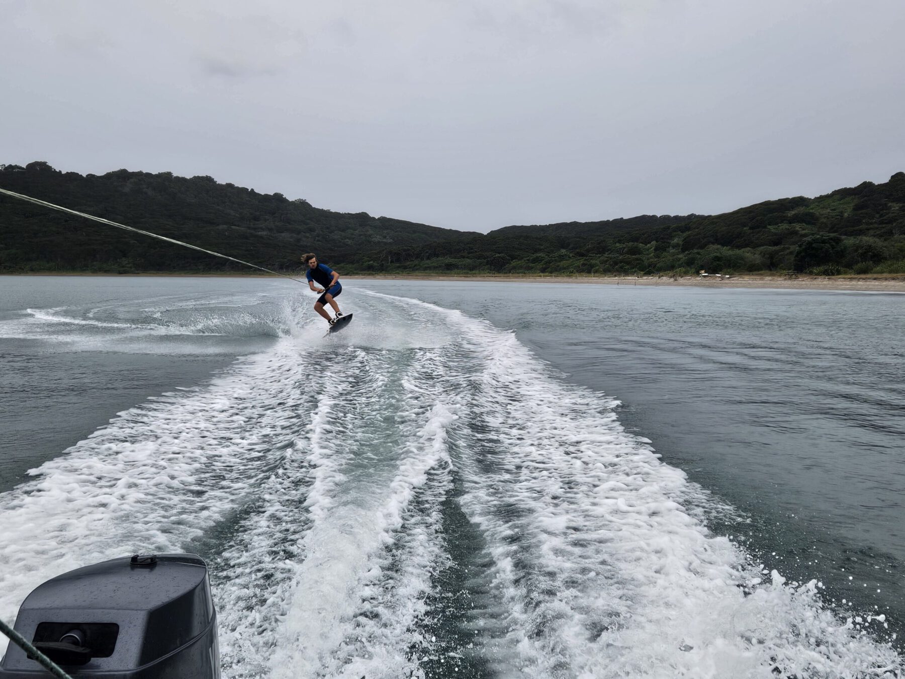 Nach dem Verkauf unseres Camping-Gefährts besuchten wir noch einen Freund von Christians Familie auf Waiheke. Tom machte der neuseeländischen Gastfreundschaft alle Ehre und trotz vereinzelter Schauern und Wolken hatten wir eine großartige Zeit beim Wakeboarden, Gin&Tonic trinken und Reiseanekdoten austauschen.